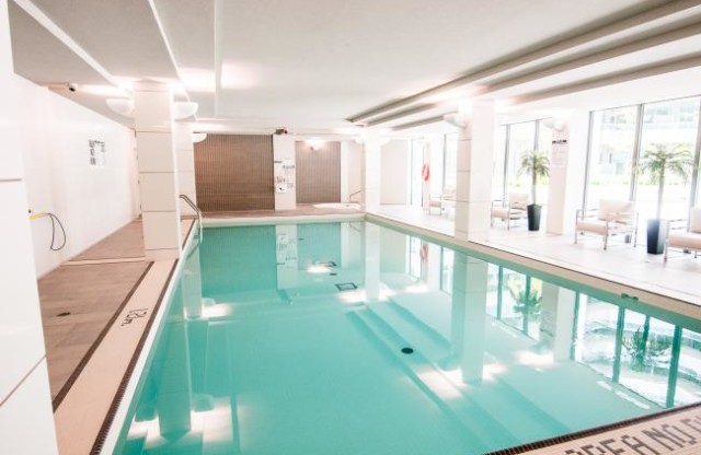 Located below the gym is a 25 ft. indoor pool. There is also an enclosed courtyard on the same floor. Lastly, there is round the clock security.